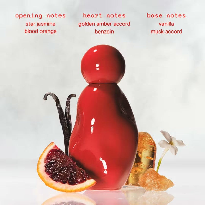 The bottle retains its iconic, sculptural shape – now dressed in a deep, fiery red hue that reflects the fragrance’s glowing intensity and seductive character. Designed to fit perfectly in the hand, with the same powerful expression as the fragrance inside.